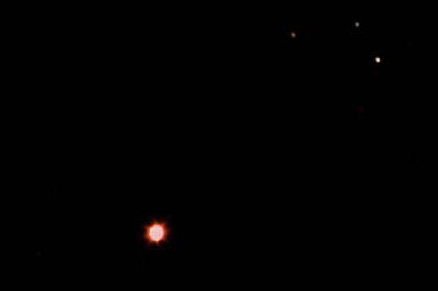 Esta foto está tomada desde una terraza de Palma (en plena ciudad) con una reflex y un objetivo de 70 mm. 20 seg de exposición. En ella distinguimos el cinturón de Orión y un poco más abajo la espada que se caracteriza por la nebulosa de Orión que se halla justo en el centro.