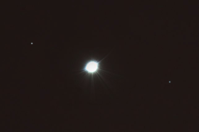 Se trata de una estrella binaria formada por Sirio a (La que vemos) y Sirio b , enana blanca muy dificil de ver situada la derecha de Sirio A).