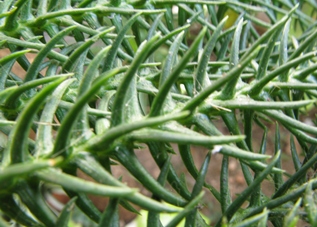 és, doncs, anemòfila és a dir, feta pel vent. Les fulles són perennes en la