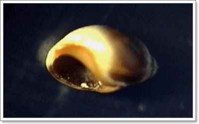 Architectonicacea: Copinya amb un gran llombrígol que s'estreny en perspectiva cap a l'interior. L'àpex es pot veure a través del llombrígol Durant l'estat de larva poden ser transportades a llargues distàncies. Architectonicaperspectiva Heliacusstramineus