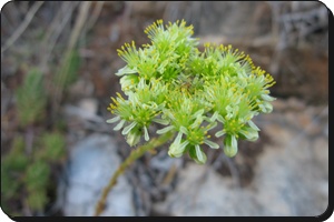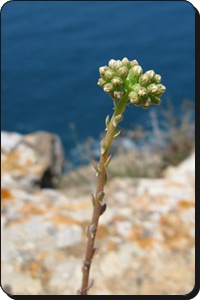 Aeonio arboreumª1 Consolda, Flor de Sant Sebastià Es cultiva als jardins i a vegades se'n troba per les teulades i parets. Floreix en una gran panícula piramidal formada per multitud de floretes grogues.