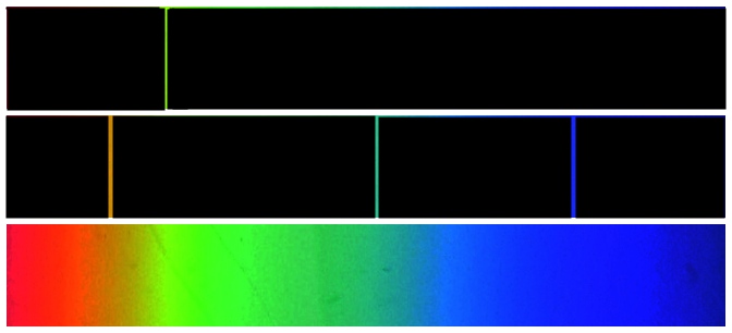 A l’espectre es poden veure els set colors de l’arc de San Martí, es a dir
