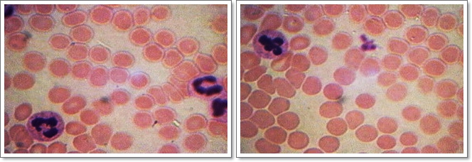 L'observació microscòpica de la sang sol tenir dos objectius; bé comptar els elements que la constitueixen o bé constatar la presència de microorganismes. Farem un frotis sobre un portaobjectes estenent bé amb el cobreobjectes o amb una barreta de vidre i procurant que quedi al més fi possible. Ho deixarem assecar a l'aire i ho fixarem amb alcohol. Després de tenyir-ho amb el mètode Giemsa, observarem els elements següents: - Els glòbuls vermells o eritròcits amb hemoglobina - Els leucòcits - Leucòcits poc colorejats (neutròfils). - Tenyits uniformement de morat - Tenyits de vermell (eosionòfils) Per cada leucòcit, hi ha a la sang entre 600-800 glòbuls vermells i hem de pensar que en una persona adulta en trobam 5 milions per milúlímetre cúbic. Per conservar la sang podem utilitzar el líquid de Hayem