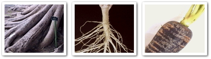 L'arrel típica de molts arbres i arbusts en té una de primària que sembla una continuació de la tija; d'aquesta surten les arrels secundàries, que són ramificacions de diferents nivells. En aquest cas, parlam d'una arrel pivotant o axonomorfa. Si no podem distingir una arrel primària, sinó que totes són del mateix ordre, parlam d'arrels fasciculades típiques de moltes herbes. A les arrels tuberoses s'emmagatzemen substàncies de reserva, com ara a les dàlies o als moniatos. A vegades les arrels estan modificades, com en els tubercles d'arrel (patates, algunes begònies), arrels amb el parènquima molt desenvolupat per emmagatzemar substàncies nutritives, o les pastanagues, els naps i els raves, d'arrels molt gruixudes amb la mateixa funció. Altres arrels modificades són les arrels adventícies que poden créixer del tall o d'altres parts de la planta i tenen com a funció absorbir aigua o enganxar-se a superfícies perquè la planta tengui més sosteniment (monstera o costella d'Adam, heura, moltes suculentes,...). Si aquestes arrels entren en contacte amb la terra, solen entrar-hi i, a vegades, donen lloc a noves plantes. A les lleguminoses se solen trobar uns bonys a les arrels. Aquests bonys estan causats per la simbiosi amb bacteris fixadors del nitrogen, que ajuden a la planta a produir substàncies que necessita. A canvi, els bacteris troben un lloc adequat per viure-hi protegits. Axomorfa Ramificada Fasciculada Napiforme Tuberosa.