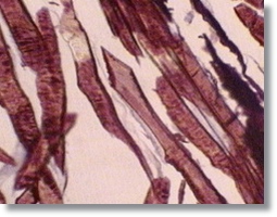 Es tallen els músculs en petits fragments i se submergeixen durant dos dies en líquid de Bouin Després de rentar bé el material, l'introduirem durant altres dos dies en goma aràbiga. Posarem el material en alcohol durant un dia amb la qual cosa la goma s'endurirà i ens serà possible realitzar els talls amb el micròtom Una vegada realitzats els microtalls, els introduirem dins aigua per tal d'eliminar la goma. El muntatge es pot fer en gelatina glicerinada.