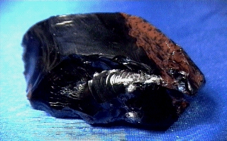 Roca vítria àcida ( vidre volcànic), de color negre, terrós fosc o gris. Fractura conco‹dal molt acusada, amb vores translúcides Té composició riolítica Sol presentar estructura flu‹dal