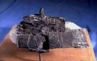 La wolframita: Fórmula: WO4(Fe,Mn) Sistema: Monoclínic Color: Negre Ratlla: De bruna vermellosa a negra brunaEsclat: Metàl.lic, submetàl.lic o resinós Grau d'opacitat: Opac Duresa: Entre 4 i 4,5 Densitat: Entre 7 i 7,5, és més alta com més ferro conté.Forma de presentar-se (hàbit): En cristalls d'hàbit tabular de cares estriades. També en formes fulloses, laminars o columnars. Massiva i rarament granular. Exfoliació: Composició química:Propietats òptiques: Reflexions internes de color bru vermellós. Jaciment: Etimologia: De les paraules de l'alemany antic "wulf", llop, i "hraban", corb.Altres informacions: S'anomena també wolframina. Es consideren wolframites les mescles en les quals la proporció de ferro i manganès (Fe:Mn) oscil.la de 5:1 a 5:3. Les que tenen una proporció més alta de ferro són ferberites, i les que tenen una proporció més alta de manganès, hubnerites. A vegades és dèbilment magnètica. Es troba a les roques àcides (dics de pegmatites i venes de quars associat al granit), en venes hidrotermals i en els filons estannífers. Es la principal mena del wolframi. A Espanya la wolframita és coneguda a Extremadura des de finals del segle XVIII. Els primers que en varen fixar la composició i varen descobrir el wolframi (o tungstè) varen ser els germans Lhuyart, que la varen estudiar al laboratori del Reial Seminari de Bergara. La wolframita abunda sobretot a laregió estannífera del nord-oest de la península, on s'explota per fer-la servir en la preparació d'acers durs.