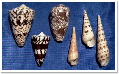 Conidae: Conusmarmoreus Conuscapitaneus Conusgeneralis Conusmediterraneus (ballaruga cònica) Conusgeographus Conusvirgo Conusvexillum