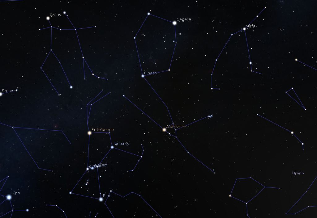 Taurus: A la derecha de Orión siguiendo la direccion del cinturón y arco de Orión encontramos la constelación de Taurus.