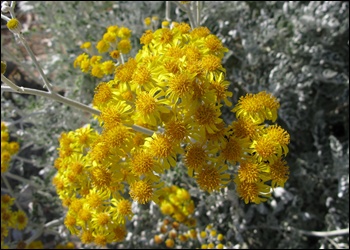 H. stoechas, flor de tot l'any, aromàtica, molt comú a llocs àrids. Les flors són grogues i es poden conservar seques molt temps.