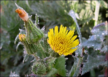 gèn. Calendula C. arvensis, de petit tamany, aquesta planta anual amb flors de color groc-taronja és molt abundant.