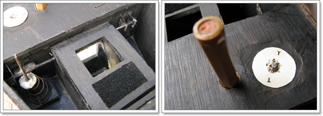 Una palanca tensava lóbturador i el foradet groc inferior du al seu