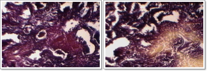 Els pulmons són uns òrgans constitu‹ts per nombroses cavitats molt petites, amb les parets extremadament primes, fetes d'epiteli monoestratificat anomenades alvèols. D'aquesta manera augmenta la superfície i es pot realitzar amb eficàcia l'intercanvi de gasos amb la sang, que circula per capilúlars molt prims entorn dels alvèols; per donar una certa consistència, la resta dels espais està emplenada amb teixit conjuntiu.