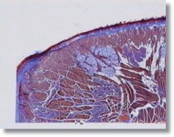 Es tallen els músculs en petits fragments i se submergeixen durant dos dies en líquid de Bouin Després de rentar bé el material, l'introduirem durant altres dos dies en goma aràbiga. Posarem el material en alcohol durant un dia amb la qual cosa la goma s'endurirà i ens serà possible realitzar els talls amb el micròtom Una vegada realitzats els microtalls, els introduirem dins aigua per tal d'eliminar la goma. El muntatge es pot fer en gelatina glicerinada.